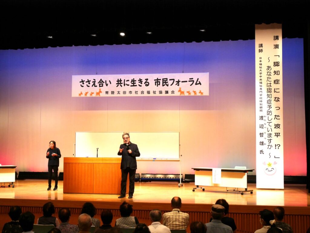 日本福祉大学中央福祉専門学校特別顧問の渡辺哲雄先生をお招きし、認知症への理解を深める講演会を開催しました。先生のクスッと笑えるエピソードや、身近で起きる出来事を例えに、イラッとすることもガッカリすることも、物事の捉え方の転換をすると認知症予防になるというお話しをいただき、終始笑いの絶えない90分となりました。ご来場いただきありがとうございました!